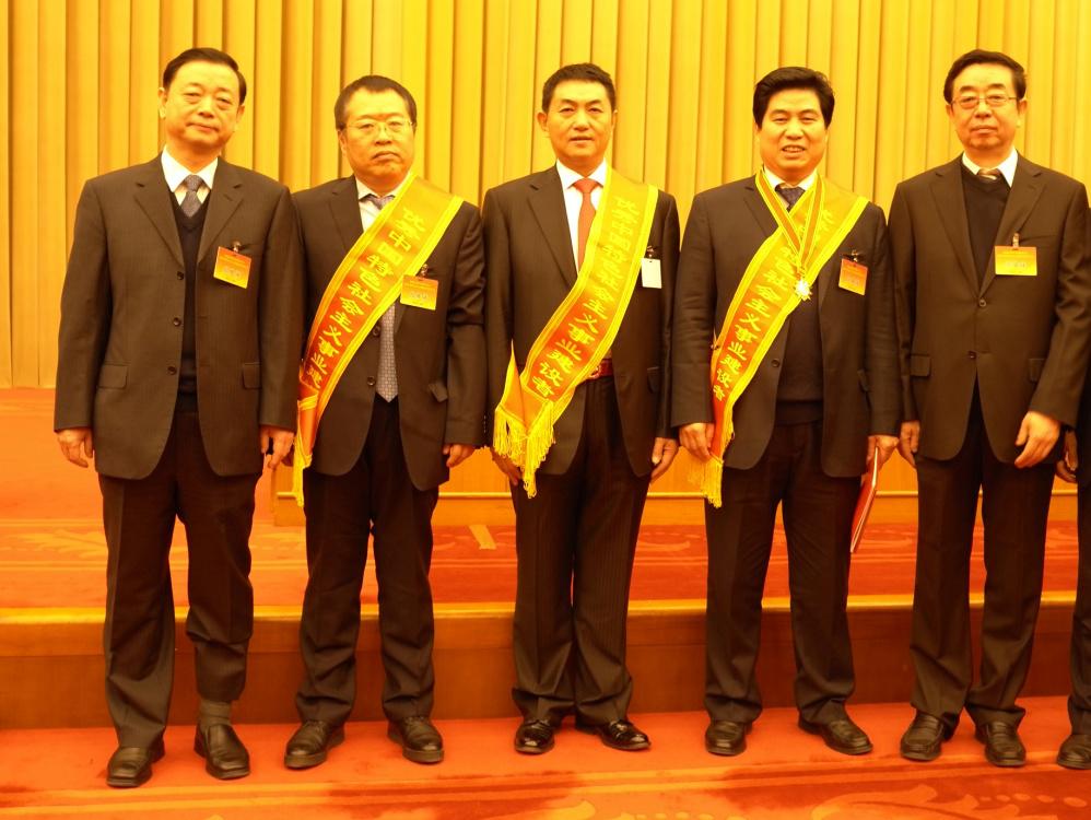 山西省工商聯(lián)主席李武章,中共山西省委統(tǒng)戰(zhàn)部副部長(zhǎng)、省工商聯(lián)黨組書記、副主席楊臨生和山西省三位獲獎(jiǎng)?wù)咂髽I(yè)家:大運(yùn)集團(tuán)董事長(zhǎng)遠(yuǎn)勤山、長(zhǎng)治市南燁實(shí)業(yè)集團(tuán)董事長(zhǎng)李建明、大同市華岳建設(shè)集團(tuán)董事長(zhǎng)昝寶石合影(照片從右到左)