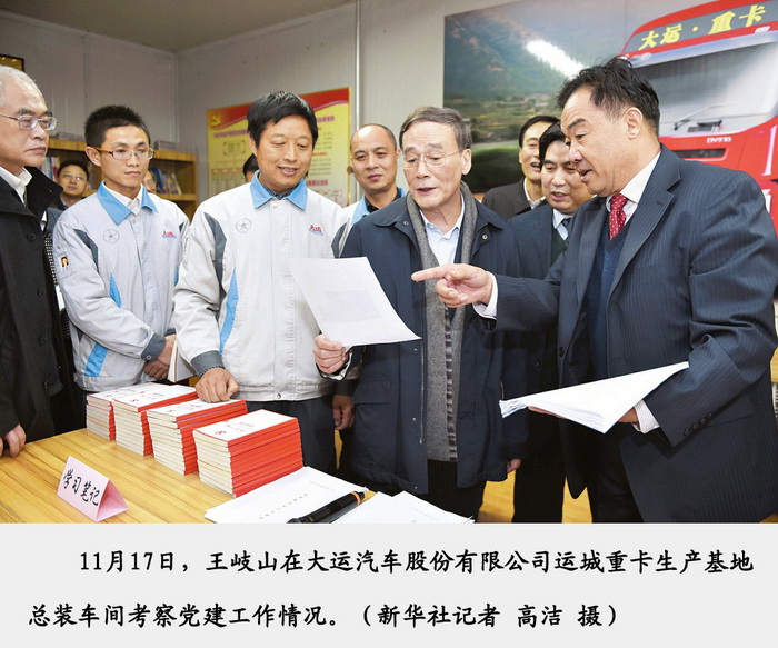 2016年11月17日下午,中共中央政治局常委、中央紀(jì)委書記王岐山一行蒞臨大運(yùn)汽車股份有限公司運(yùn)城重卡生產(chǎn)基地視察,深入了解大運(yùn)公司生產(chǎn)經(jīng)營(yíng)及黨建情況。